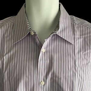 Ben Sherman Men's Shirt 17 34/35 XL Lavender Black White Striped LS