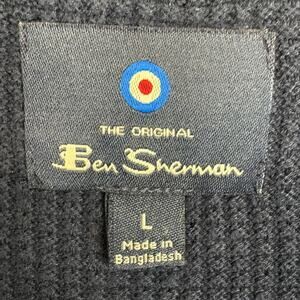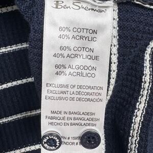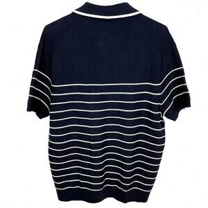 Ben Sherman Mens Textured Short Sleeve Knit Polo Sweater Blue White Stripe Large