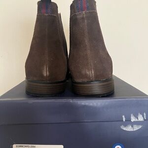 These brown Monroe Ben Sherman boots feature a rich dark brown Leather upper material that offers a soft and velvety texture. The classic design includes elastic side panels for easy wear and a sleek silhouette that extends just above the ankle.
