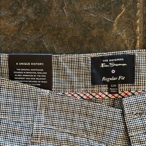 Ben Sherman Navy and White Checkered Flat Front Shorts, 32 waist