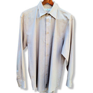 Ben Sherman, Shirt, Tattersal, Plaid, Long Sleeve Button Down, Front Patch Pocket, Size Large, Tan, Orange, Blue,