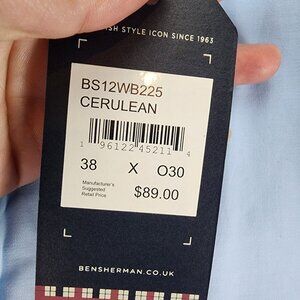 Ben Sherman Pants Mens 38x30 Light Blue Stretch High Rise Straight Fit *NWT*