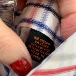 Size XL. 55% Cotton 45% Polyester. Length 31 1/2 inches. Chest 26 inches measured flat. Sleeve length 35 1/2 inches. Has a place for cufflinks. Great condition!