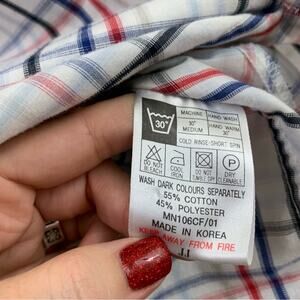 Ben Sherman Plaid Button Down White/Red/Blue Long Sleeve Shirt