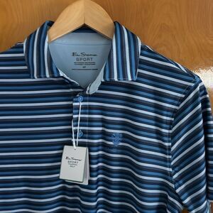 This is new with tags. The color is blue. The fabric is 88% polyester, 12% elastane. This is a sport wicking material. The chest is 40 inches, 20 flat. The length is 30 inches.