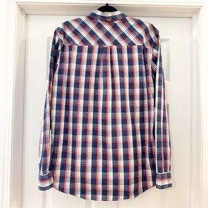 Ben Sherman Red White Blue Plaid Paisley Long Sleeve Button Down Shirt. Size large. Excellent condition.