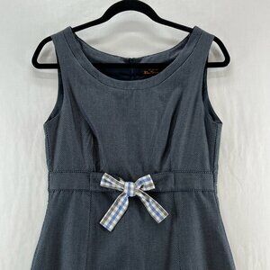 Ben Sherman Sheath Mini Dress Womens S Sleeveless Bow Round Neck Patterned Blue