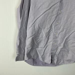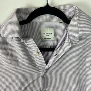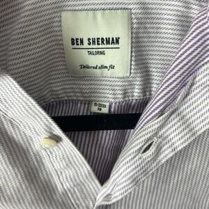 Gently Used Ben Sherman Tailored Slim Fit Shirt. This is a men's 15, 32/33. White with purple vertical striping. Very soft and luxurious shirt. Seems like an untucked fit/design. 100% cotton.