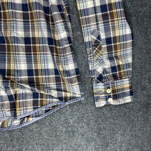 Ben Sherman Shirt Mens Large Button Up Blue Gray Yellow Plaid Cotton Pocket