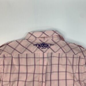 Ben Sherman Shirt Mens M Medium Pink Purple Button Up Windowpane Plaid Cotton