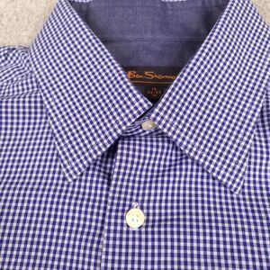 Ben Sherman Shirt Mens Medium Blue Plaid Gingham Button Down Long Sleeve