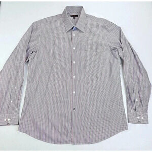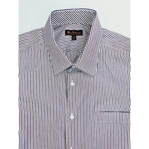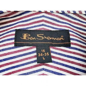 Ben Sherman Size 16 34-35 Large REd White Blue Stripe Long Sleeve Cotton Shirt
