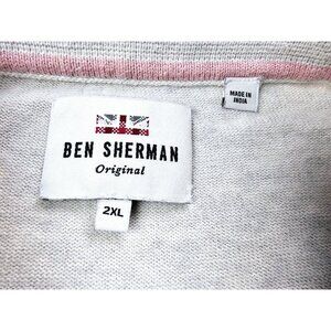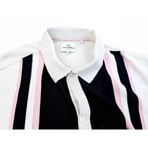 Ben Sherman Size 2XL Mens Gray Pink Black Stripe Short Sleeve Logo Sweater Shirt