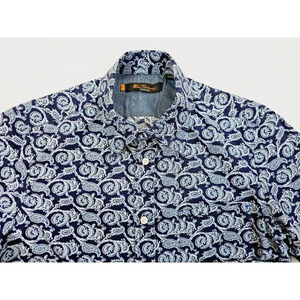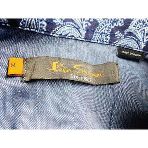 Ben Sherman Size Medium Men's Blue Paisley Embroidered Pocket Logo S/S Shirt