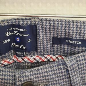 Ben Sherman Slim Fit Pants 30x30 Blue Houndstooth Stretch Mod Cotton Trousers