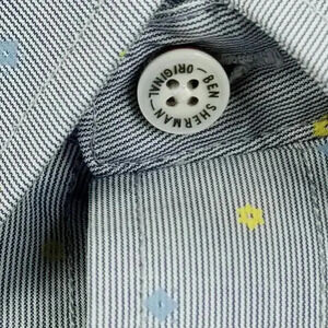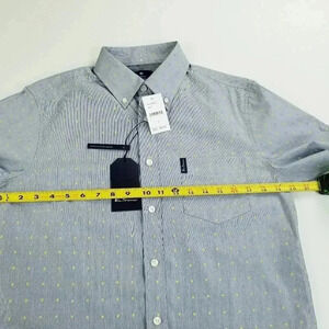 Ben Sherman Small Mod Classic Fit Pocket Logo Tag Blue Yellow Stripe Pattern