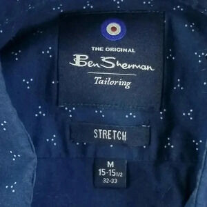 Ben Sherman Stretch Medium 15-15.5 32/33 Blue With Powder Blue Dot Pattern Shirt