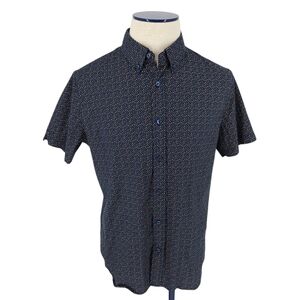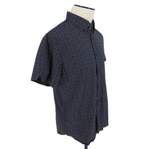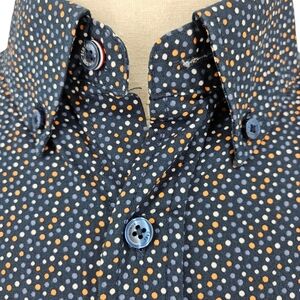 Ben Sherman Stretch Slim Fit Shirt Navy Polka Dot Short Sleeve Button Collared