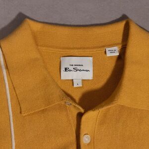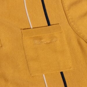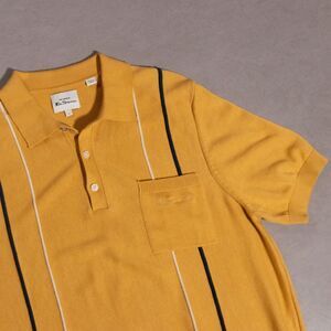 Ben Sherman Striped Short Sleeve Knit Polo Shirt Mens Large Yellow Preppy