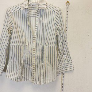 Ben Sherman Top Womens Medium Blue White Cotton Dress Shirt Striped Button Up