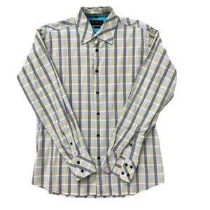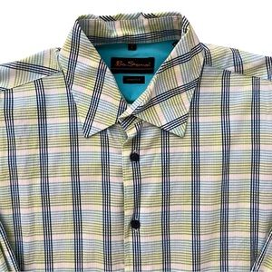 Ben Sherman Vintage Y2K Men's Stretch Blue & Green Plaid Button Down Shirt Large