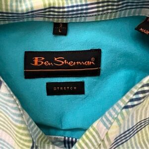 Ben Sherman Vintage Y2K Men's Stretch Blue & Green Plaid Button Down Shirt Large. This stylish vintage men's plaid shirt features a blend of blue and green colors. Super comfortable because it has stretch! Perfect for casual and formal occasions. Approximate measurements: chest from armpit to armpit 21.5” (43” total), length 29”. In great condition!