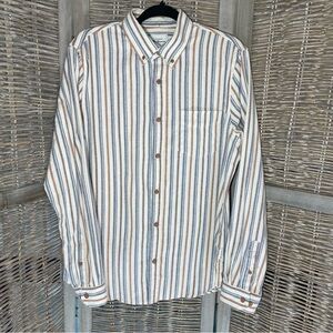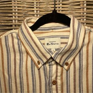 Experience timeless style with this Ben Sherman casual button-down shirt, featuring a classic design in white, blue and brown striped.