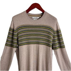 Ben Sherman XL Sweater Tan Brown Stripe Crewneck Cotton Cashmere Pullover Mens