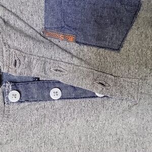 Gray marled color with blue accents. Cotton blend. Excellent condition.