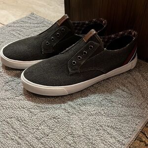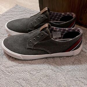 The Pete laceless is an easygoing style to slip on and off. A cotton textile upper with stitched-down lace rows add unique detail to this everyday style. A subtle checkboard design in the fabric and grosgrain trim accent adds interesting contrast to the trainers. These slip-on sneakers have a relaxed fit for laid-back everyday style.