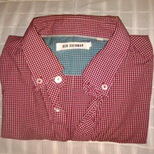 Long sleeve Ben Sherman w/ leather Ben Sherman tag on the side. Style on top of style. I would wear this untucked as well as tucked with sleeves rolled up. ... chef's kiss