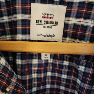 Ben Sherman size 16 32/33 long sleeve blue&red plaid cotton tailored slim shirt