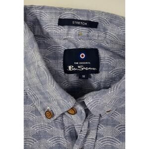 Ben Sherman stretch wave button up shirt beach vacation preppy M light blue