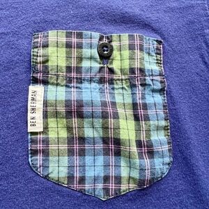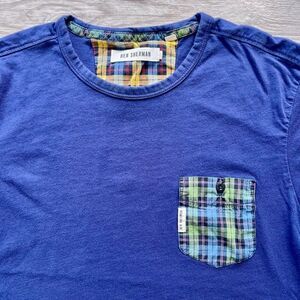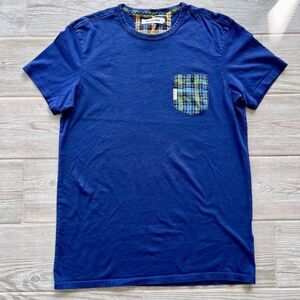 Ben Sherman Mens Blue Plaid Pocket Detail Crew Neck Short Sleeve T-Shirt Small