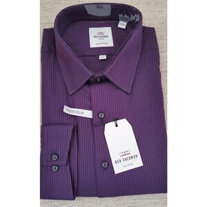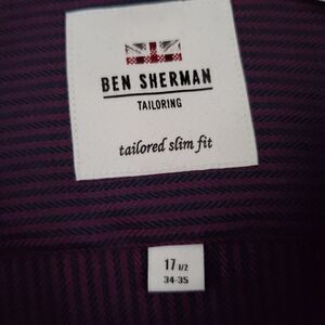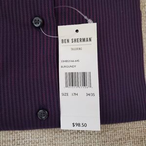 Ben Sherman Textured Stripe Slim Fit Dress Shirt size 17H 34/35 in Burgundy.