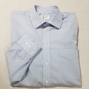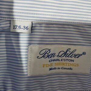 Ben Silver Shirt Mens 17.5 36 Blue White Stripe Button Down Dress Classic Pocket