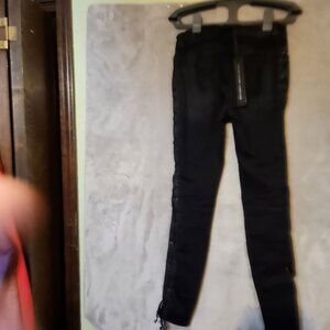 Ben Taverniti Punk laced up Unravel Project Black Skinny Jeans Distressed Sz 25