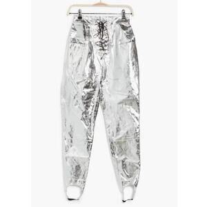Ben Taverniti Unravel Project Lace Up Leather Skinny Stirrup Pants in Silver Metallic