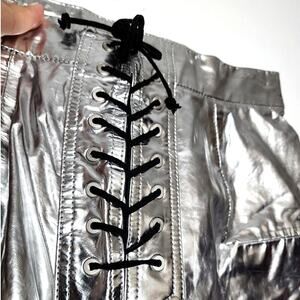 They're made from silver leather that's slightly stretchy and sit high on the waist with lace up detailing