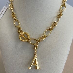 Ben-Amun Link Brass Chain Necklace with "A" Initial Charm - Goldtone - NWT