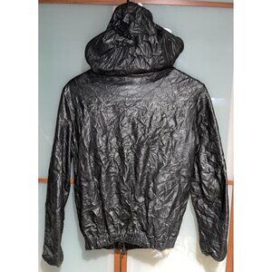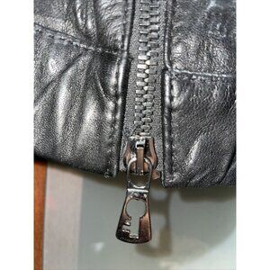 This stylish jacket from BenHeart is a must-have for anyone who loves a designer look with a biker edge. Made from genuine lamb leather with a softshell fabric type, this jacket features an asymmetrical zip closure, gathered accents, and a hood for added warmth. It's perfect for travel or casual occasions, with an all-seasons design that's versatile and adaptable to any outfit. Despite being pre-owned, this unisex jacket in size X-Small US or 46 Euro is in excellent shape and has a vintage appeal that's hard to resist. The jacket is fully lined and has snap pockets for added convenience, making it the perfect choice for the colder months of the year. The chest size is 38 inches, with a slim fit that's flattering and comfortable to wear. The black color and crinkle distressed look add to the overall aesthetic of the jacket, which is part of the BenHeart product line. This Italian-made jacket is part of the 2000s, Y2K, 90s rock and roll themes, making it a great addition to any collection.