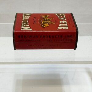 This vintage Ben-Hur marjoram tin container is a delightful relic from a bygone era, showcasing the timeless appeal of classic packaging. With its vibrant red and black design, this container was crafted to hold 2 ounces of pure marjoram, a fragrant herb used in various culinary creations. Such tins are treasured by collectors for their historical value and aesthetic charm, offering a glimpse into the past.