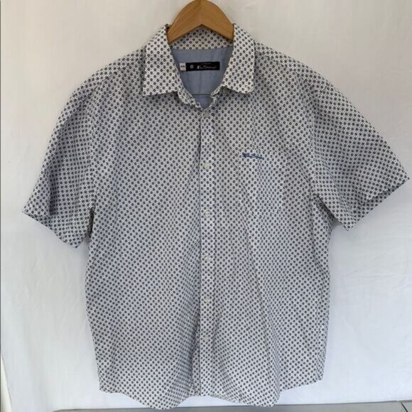 Ben Sherman Men's White and Blue Patterned Shirt Sz XXL