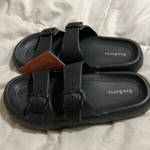 BenSorts Black Buckled Adjustable Cloud Slides Unisex Adult Size 42-43