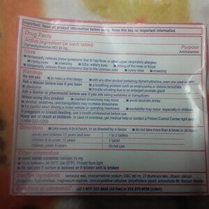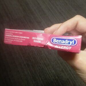Benadryl Allergy, Small Tablets, 24 Tablets, for Sneezing, Runny Nose, Itchy watery eyes, itchy throat. Product packaging is slightly crushed but has not been opened.