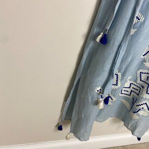 Benaras by Citrus Embroidered Boho Maxi Dress Blue Long Balloon Sleeves Belted