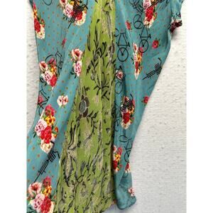 Benares Floral Bicycle Print V-Neck Tunic Dress XL