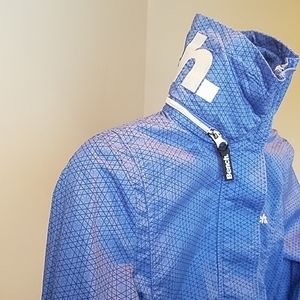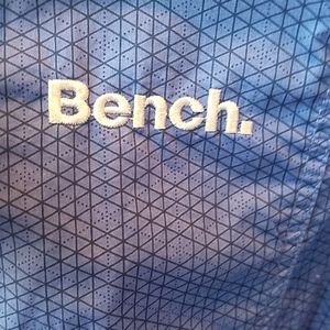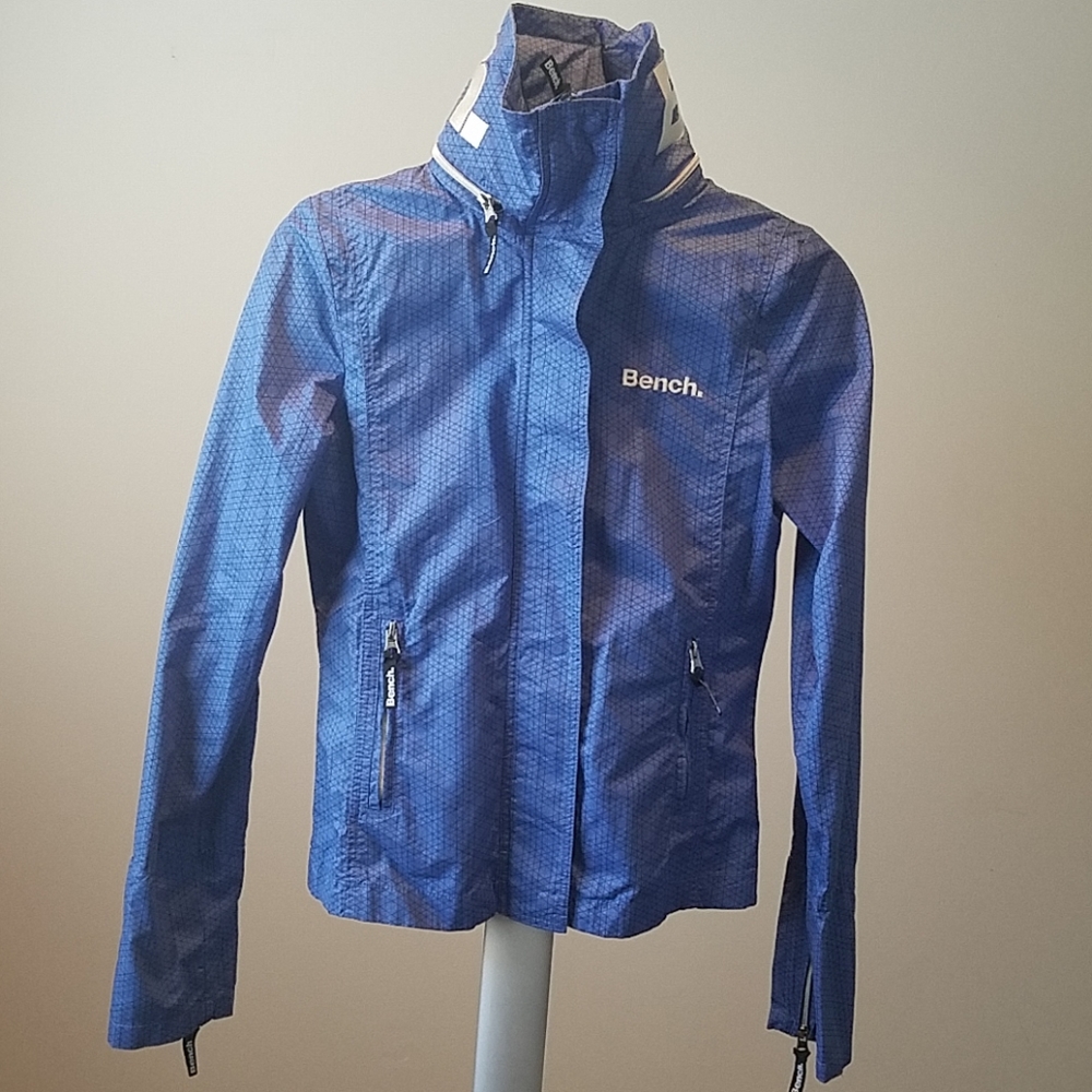 Bench Urban wear High collar with hidden hood blue with black pattern. Light weight, 100% cotton zipper up jacket. New without tags never been worn.