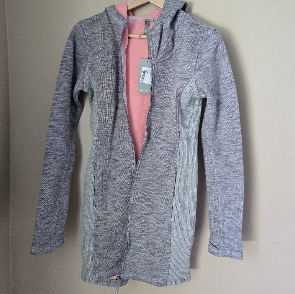 NWT size small jacket, in excellent condition. It may have been a sample a d may be 1 of 1. Coral color interior. Very warm and cozy. Has thumb holes and hoodie. Really great quality