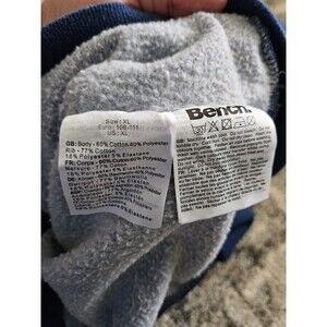This Bench hoodie features a drawstring closure, hooded neckline, and knit cotton blend fabric. The logo accents add a stylish touch, while the pockets provide convenient storage. This unisex pullover hoodie is size XL, but fits like a large. Perfect for any multi-performance activity, this gray hoodie is a great addition to any wardrobe.